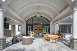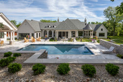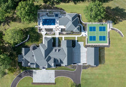 Sitting at over 10,000 square feet, this timeless home features a symmetrical exterior design, clad with brick, stone and limestone trim accents. On either side of the gable entry, metal roofed box bays with dark bronze windows modernize the traditional feel of the home. This home was designed to be a gathering space for a large family, with warm spaces to entertain throughout. Inside includes formal study, formal dining room, eleven foot tall great room, breakfast room, a butler's pantry and full catering kitchen. In the backyard, a pool, pool house, pickleball courts, and a detached three car garage are all surrounded by mature trees.